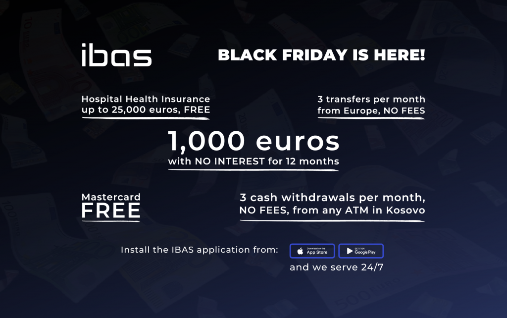 REAL BLACK FRIDAY. 1,000 EUROS – ZERO INTEREST FOR 12 MONTHS. TRANSFERS FROM EUROPE WITHOUT FEES. FREE HOSPITAL HEALTH INSURANCE